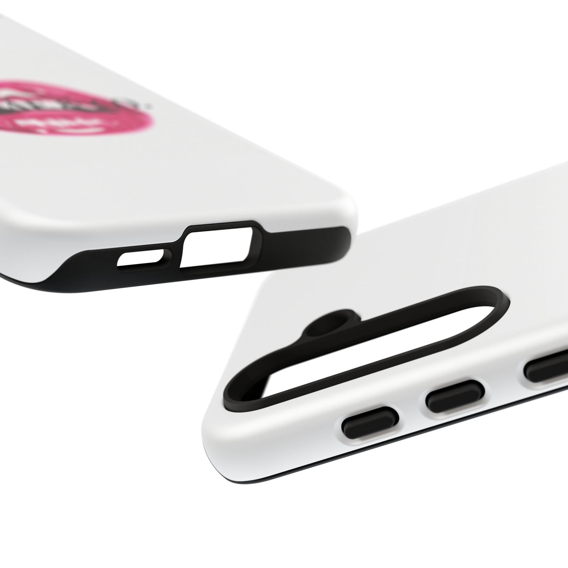 This sleek protective phone case brings confident, fashion-forward energy to everyday carry. A glossy white or matte shell showcases a bold watercolor-style pink lip print with a tiny beauty mark and crisp black logotype across the center, creating a minimalist yet striking statement. The dual-layer construction—rigid polycarbonate outer shell with a soft TPU silicone liner—absorbs shocks and resists drops while keeping ports accessible. UV protection and durable printing mean the image stays vibrant outdoors; handle with care around strong alcohols, creams, and extreme heat to preserve finish. Lightweight and wireless-charging compatible, this case fits seamlessly into a style-forward routine and guards your device without adding bulk.